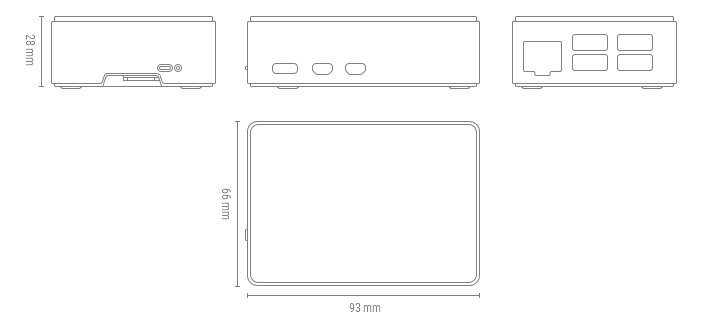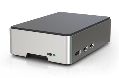 Perfectly crafted aluminum enclosure with two matte black, soft-touch panels. Small ventilation slots on the bottom of the enclosure with rubber feet to slightly raise the unit for enhance cooling.