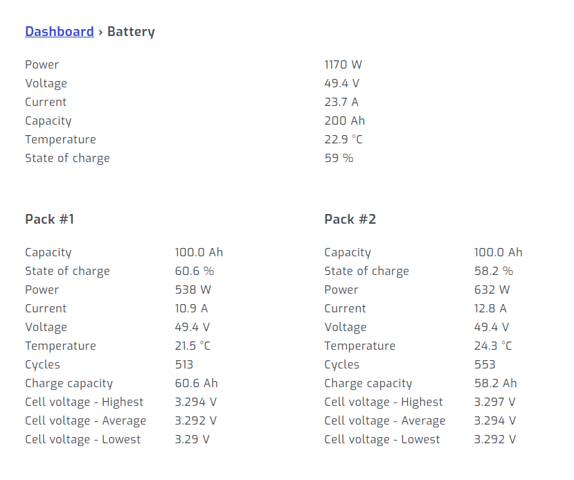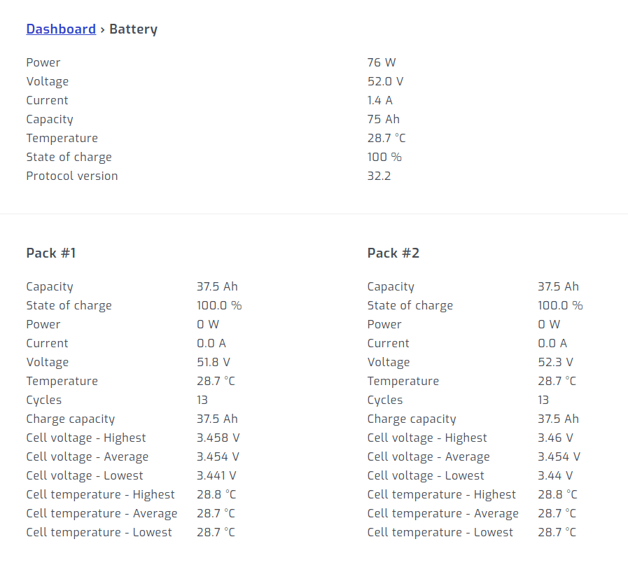 - Freedom Won eTower (untested if individual pack metrics are available)